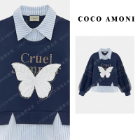 秋冬新款设计高级感拼接重工假两件蝴蝶结显瘦长袖卫衣AD190