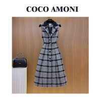 秋冬季时尚设计师爆款女装拼接收腰显瘦气质连衣裙WXH1193