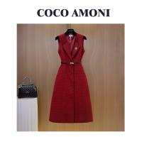 秋冬季时尚设计师爆款女装拼接收腰显瘦气质连衣裙WXH1178
