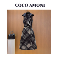 秋冬季轻奢设计师爆款女装拼接收腰显瘦气质连衣裙WXH1154