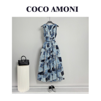 时尚高级设计师夏季新款气质女装拼接重工褶皱显瘦连衣裙ZCM043