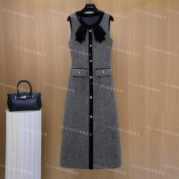 秋冬新款设计师爆款女装拼接收腰显瘦气质连衣裙WXH1022